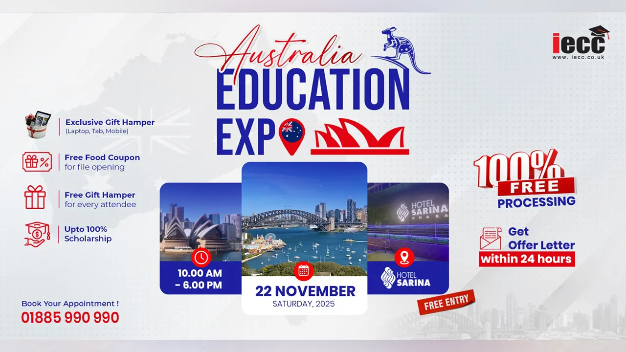 দেশের প্রতিটি জেলা থেকে শিক্ষার্থীরা IECC Bangladesh-এর মাধ্যমে অস্ট্রেলিয়ার বিশ্ববিদ্যালয়ে আবেদন, স্কলারশিপ, ভিসা ও আবাসন সংক্রান্ত সহায়তা পাচ্ছে। তাদের অভিজ্ঞ কাউন্সেলর টিম প্রতিটি শিক্ষার্থীর প্রোফাইল অনুযায়ী উপযুক্ত কোর্স ও বিশ্ববিদ্যালয়ের পরামর্শ দেয়। এছাড়া প্রতিষ্ঠানটি নিয়মিতভাবে ঢাকাসহ বিভিন্ন শহরে স্টাডি অ্যাব্রড ইভেন্ট আয়োজন করে, যেখানে শিক্ষার্থীরা সরাসরি অস্ট্রেলিয়ার বিশ্ববিদ্যালয়ের প্রতিনিধিদের সঙ্গে দেখা করতে পারে। সবচেয়ে গুরুত্বপূর্ণ বিষয় হলো—IECC Bangladesh কোনো অ্যাপ্লিকেশন বা ফাইল প্রসেসিং ফি নেয় না; পুরো প্রক্রিয়াটিই সম্পূর্ণ ফ্রি!