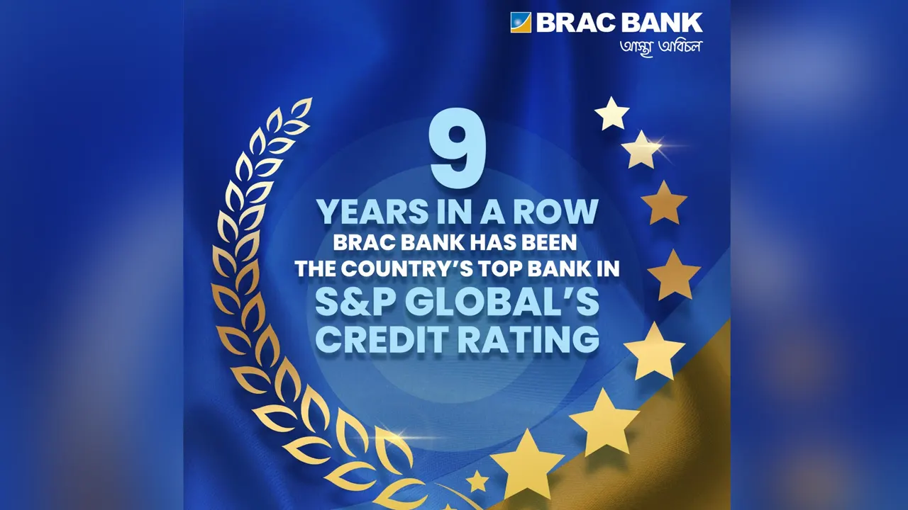 আন্তর্জাতিক ক্রেডিট রেটিং সংস্থা এসঅ্যান্ডপি গ্লোবাল রেটিংস আবারও ব্র্যাক ব্যাংককে দেশের সেরা ক্রেডিট রেটিং প্রদান করেছে। সংস্থাটি ব্র্যাক ব্যাংককে দীর্ঘমেয়াদে ‘বি+’ এবং ‘স্থিতিশীল’ আউটলুক দিয়েছে, যা বাংলাদেশের সার্বভৌম রেটিংয়ের সমতুল্য। টানা ৯ বছর ধরে এই স্বীকৃতি ব্যাংকটির স্থিতিশীলতা, সুশাসন এবং টেকসই আর্থিক কাঠামোর প্রতিফলন বহন করে। রোববার (০৭ ডিসেম্বর) ব্র্যাক ব্যাংকের এক বিজ্ঞপ্তিতে এ তথ্য জানানো হয়।