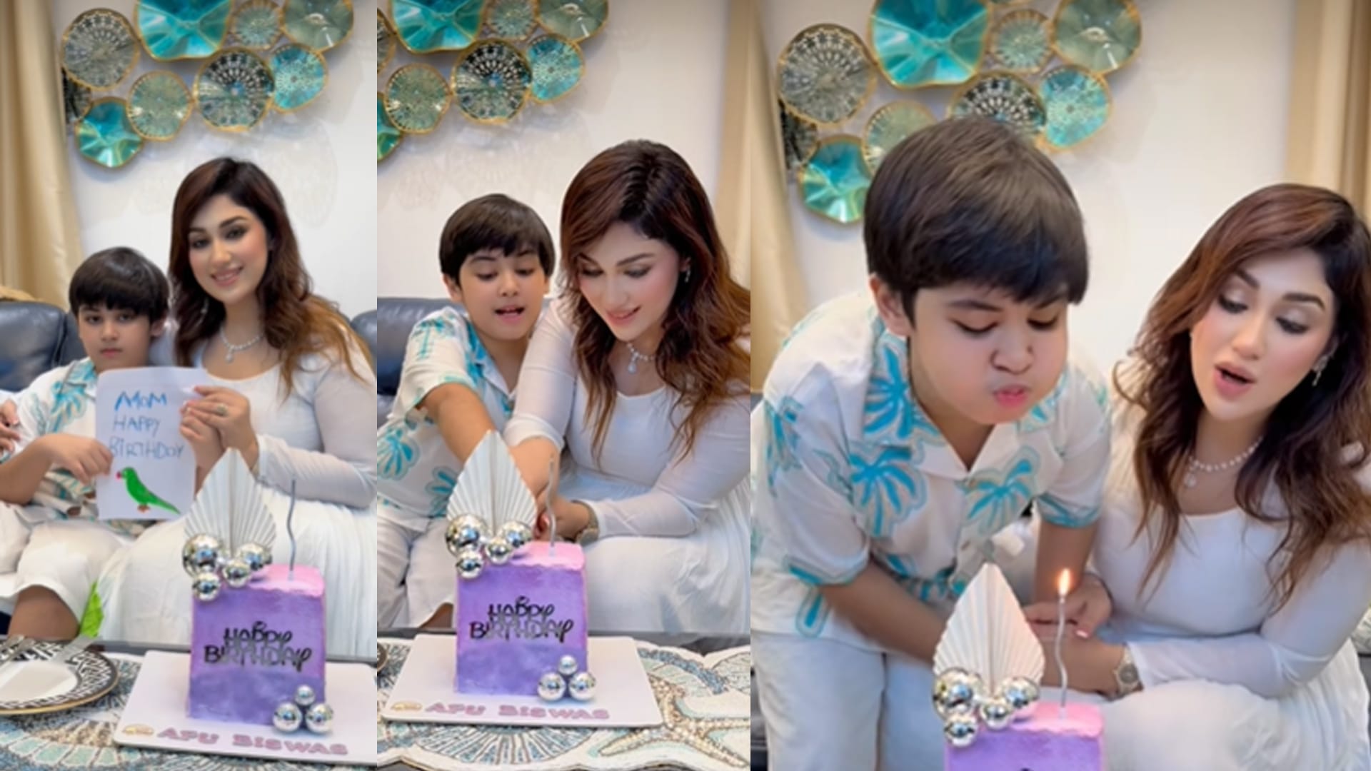ভিডিওতে দেখা যায়, মা ও ছেলে দুজনেই সাদা পোশাকে সাজে মিল রেখে উপস্থিত হয়েছেন। সোফার টেবিলে রাখা ছিল একটি বেগুনি রঙের জন্মদিনের কেক। ছোট্ট জয় মিষ্টি কণ্ঠে মাকে বলে ওঠে, “মম, হ্যাপি বার্থডে!” — ছেলের মুখে এই কথাগুলো শুনে অপুর মুখে ফুটে ওঠে অগাধ ভালোবাসার হাসি। এরপর মোমবাতি ফুঁ দেওয়া, কেক কাটা এবং মা-ছেলের খুনসুটির দৃশ্য নেটিজেনদের হৃদয় ছুঁয়ে যায়।