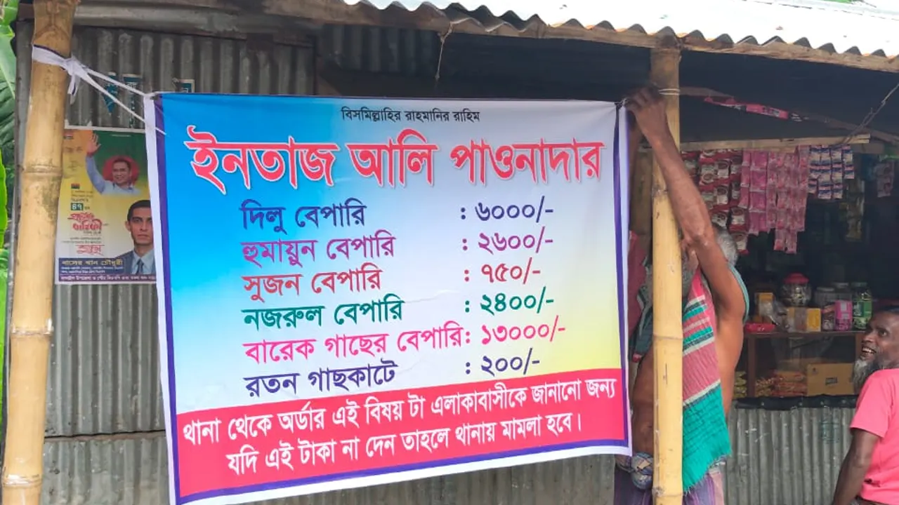 ৪ বাই ৫ ইঞ্চির ব্যানারে দেনাদারদের নাম, টাকার পরিমাণ এবং সতর্কবার্তা উল্লেখ করে লেখা হয়— “থানা থেকে অর্ডার, এ বিষয়টা এলাকাবাসীকে জানানোর জন্য। যদি এ টাকা না দেন, তাহলে থানায় মামলা হবে।”