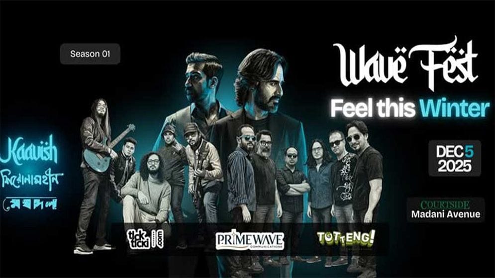 বছর শেষে শীতের আগমনী ছোঁয়া প্রকৃতিতে যেমন জড়তা আনে, তেমনি শহরে জমে ওঠে কনসার্ট–উৎসবের উষ্ণতা। সেই ধারাবাহিকতায় আয়োজন করা হচ্ছে ‘ওয়েভ ফেস্ট: ফিল দ্য উইন্টার’ শিরোনামের বিশেষ সঙ্গীতানুষ্ঠান। এতে অংশ নিতে পাকিস্তান থেকে ঢাকা আসছে জনপ্রিয় ব্যান্ড ‘কাভিশ’, তাদের সঙ্গে মঞ্চ ভাগ করে নেবে বাংলাদেশের দুই শীর্ষ ব্যান্ড ‘শিরোনামহীন’ ও ‘মেঘদল’।