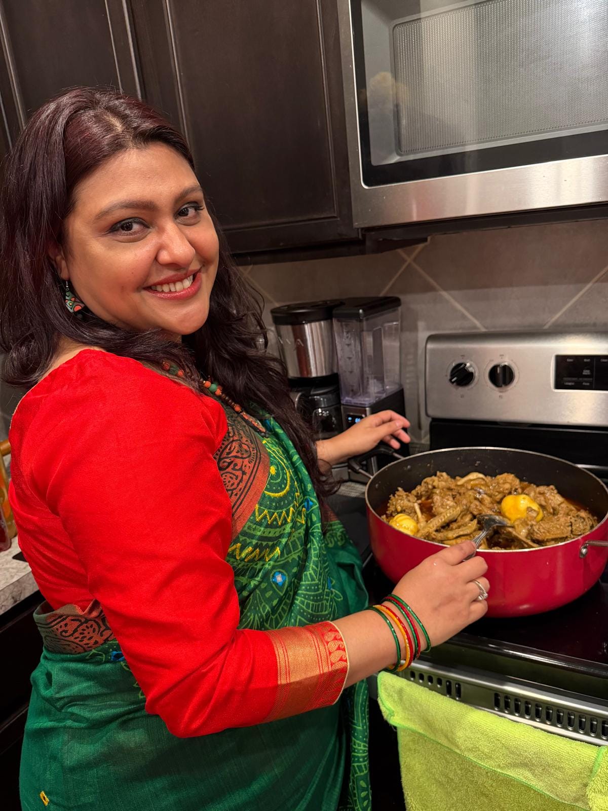ব্যস্ত প্রবাসজীবনের মাঝেও দেশের খাবারের স্বাদ ভাগাভাগি করে নেওয়ার মধ্য দিয়ে বাংলাদেশি সংস্কৃতির প্রতি নিজের ভালোবাসার প্রকাশ ঘটান শাম্মী নাহার। উপস্থিত অতিথিরা জানান, ভুনা খিচুড়ি ও হাঁসের মাংসের স্বাদে যেন মুহূর্তেই ফিরে গিয়েছিলেন দেশের মাটিতে।
