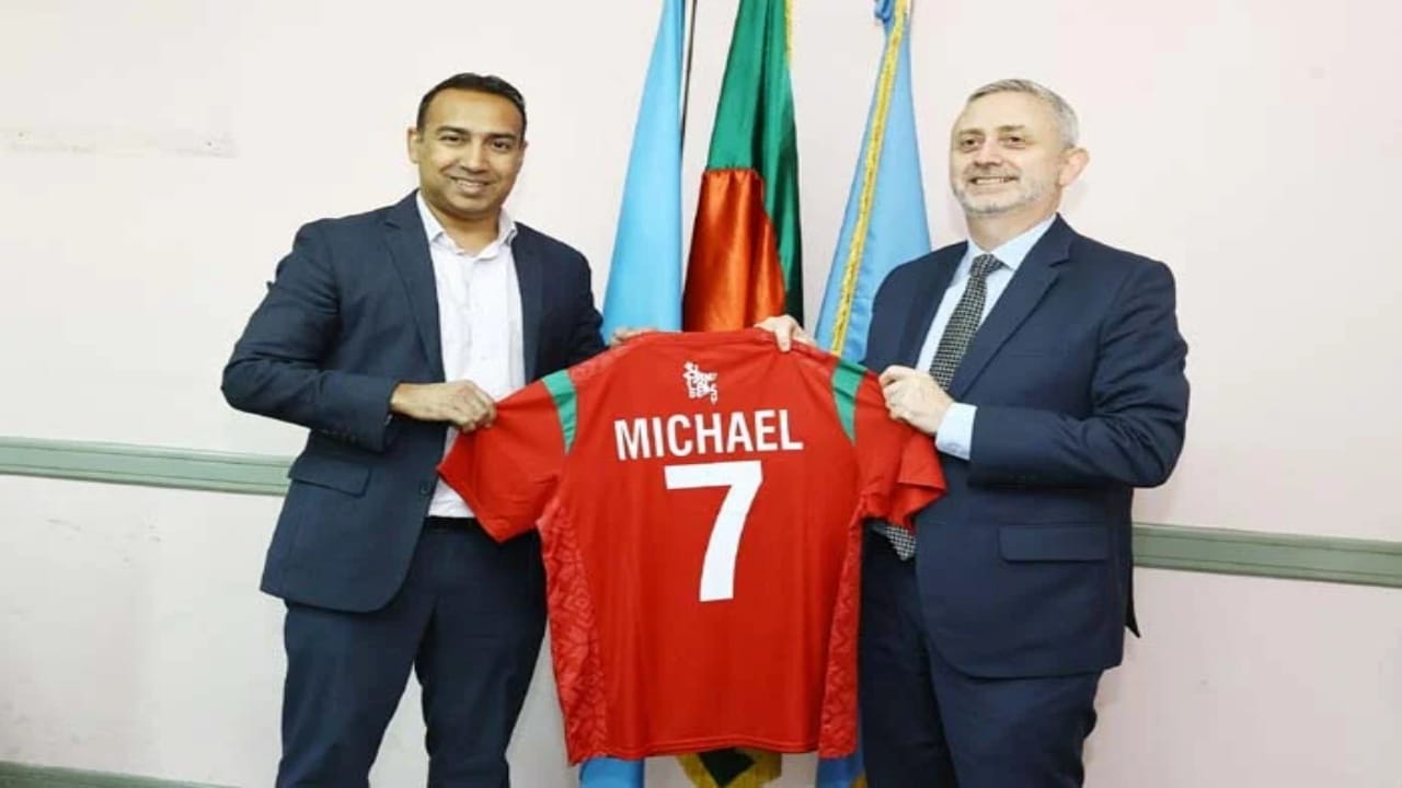 বাংলাদেশের ফুটবলের সার্বিক উন্নয়ন ও ক্রীড়া কূটনীতি জোরদার করার লক্ষ্যে সম্প্রতি বাংলাদেশ ফুটবল ফেডারেশন (বাফুফে) ভবন পরিদর্শন করেছেন ইউরোপীয় ইউনিয়নের (EU) রাষ্ট্রদূত মাইকেল মিলার। বাফুফে সভাপতি তাবিথ আউয়ালের সভাপতিত্বে অনুষ্ঠিত এই সৌজন্য সাক্ষাতে দুই পক্ষের মধ্যে অত্যন্ত গঠনমূলক ও ফলপ্রসূ আলোচনা সম্পন্ন হয়। বন্ধুত্ব ও অংশীদারিত্বের নিদর্শন স্বরূপ রাষ্ট্রদূতের হাতে বাংলাদেশ নারী জাতীয় ফুটবল দলের একটি জার্সি এবং ফেডারেশনের সম্মানসূচক ক্রেস্ট তুলে দেওয়া হয়।