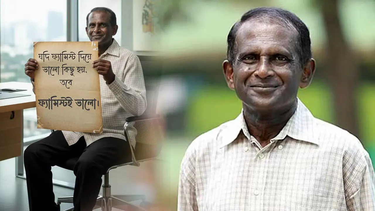সম্প্রতি ফেসবুকে ভাইরাল হওয়া কয়েকটি ছবিতে দেখা যায়, হাসান মাসুদের হাতে একটি পোস্টার বা প্ল্যাকার্ড, যেখানে বড় অক্ষরে লেখা— ‘যদি ফ্যাসিস্ট দিয়ে ভালো কিছু হয়, তবে ফ্যাসিস্টই ভালো।’ ছবিটি প্রথম দর্শনে দেখলে অনেকের কাছেই এটি রাজনৈতিক প্রচারণা বা অভিনেতার ব্যক্তিগত মতাদর্শের প্রকাশ বলে মনে হতে পারে, যা সাধারণ মানুষের মধ্যে বিভ্রান্তি তৈরি করেছে।